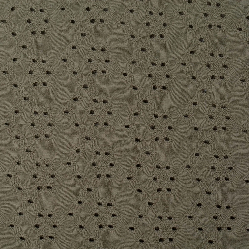 Madeira bavlněný úplet ARMY. Trendy záležitost především na letní měsíce. Typickým znakem madeiry jsou dírkované výšivky. Skvělí parťák do letního počasí. Miluje moře. Látka je pružná, prodyšná, hladká na omak, příjemná na tělo. Nosí se velmi pohodlně díky pružnosti v obou směrech.