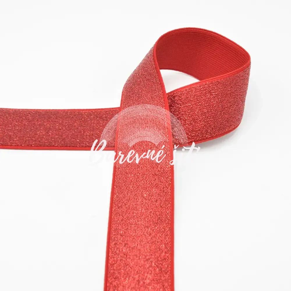 Prádlová guma červená TŘPYTIVÁ (E)🌈 Skladem 4.4 m33,00 Kč/ m27,27 Kč bez DPH