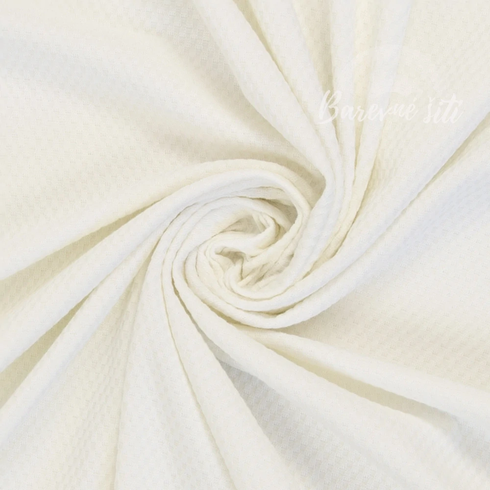 Strukturovaný úplet Bílá. Limitovaná edice jaro/léto 2026. Jakmile se vyprodá nebude již možné zakoupit. Elegantní úplet s jemnou reliéfní strukturou, která dýchá a drží tvar. Ideální pro kvalitní, pohodlné a stylové oblečení.