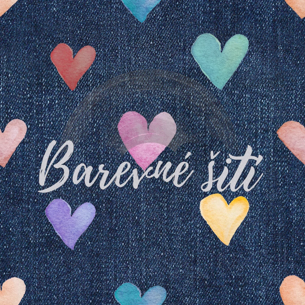 Teplákovina, Barevná srdíčka na jeans. Pokud hledáte kvalitní teplákovinu je Bella ta správná volba. Tiskne se top barvami na špičkovou evropskou přízi v šířce 180cm.Látka je pružná, prodyšná, hladká na omak, příjemná na tělo. Nosí se velmi pohodlně díky pružnosti v obou směrech. Vzor můžete dokombinovat s našemi jednobarevkami -náplety či teplákovinami. Samozřejmostí jsou initě v ladící se barvě.