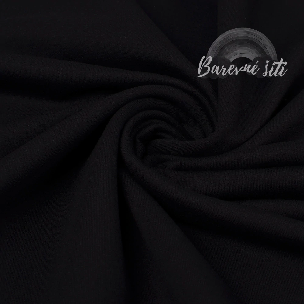 Teplákovina, Černá Premium. Objevte krásu jednoduchosti! Naše jednobarevná teplákovina je příjemná, pružná, dokonalá. Kvalita, která potěší Vás i Vaši peněženku. Ve stejném odstínu nabízíme také úplet a náplet.