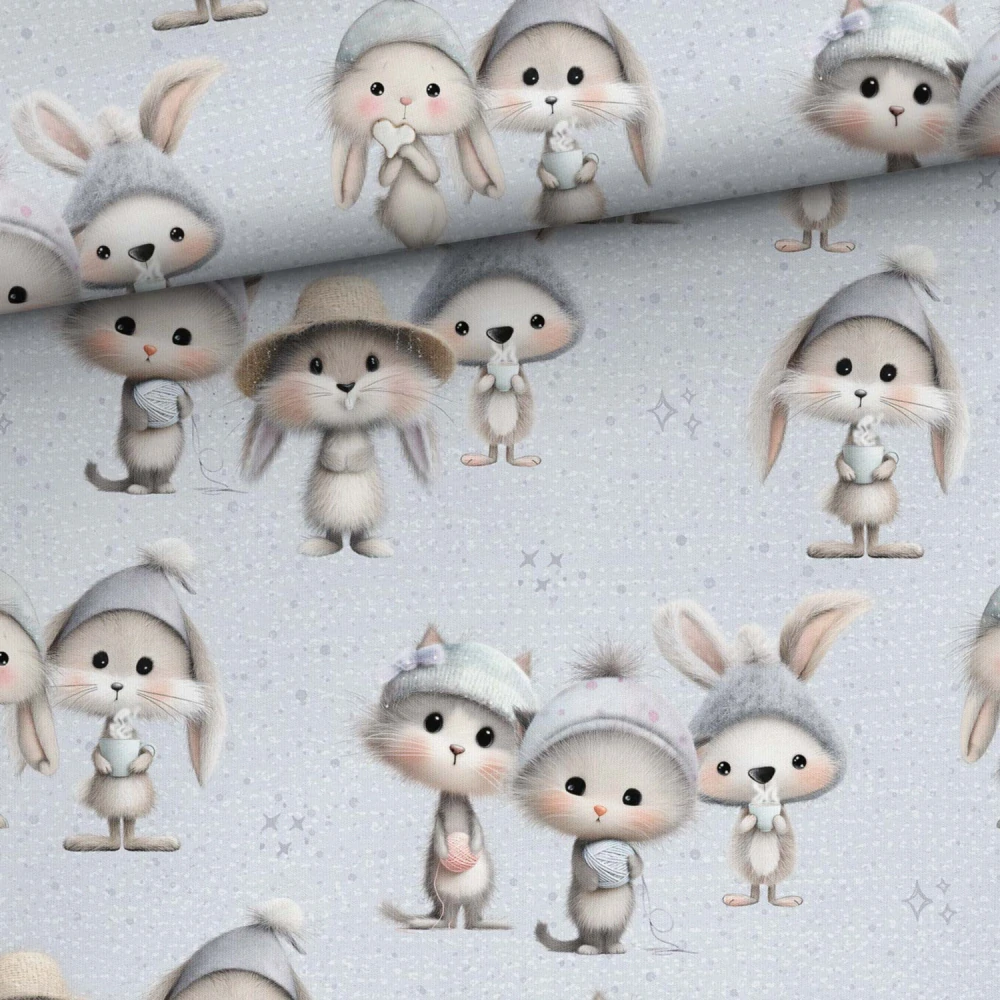 Teplákovina, Klubíčka, teplý čaj, zvířátka. Teplákovina s dětskými motivy pro Vaše tvoření. Příjemný a kvalitní materiál, který budete Vy i Vaše děti milovat. Vzor můžete dokombinovat s našemi jednobarevkami - náplety či teplákovinou. Samozřejmostí jsou i nitě v ladící se barvě.