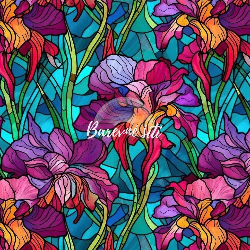 Teplákovina, Mozaikové kosatce (E) 1,25m/ks🌈 Skladem 1 ks410,00 Kč/ ks338,84 Kč bez DPH