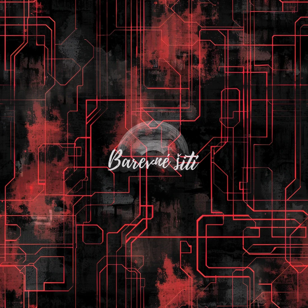 Teplákovina, Rudé obvody na černé. Pokud hledáte kvalitní teplákovinu je Bella ta správná volba. Tiskne se top barvami na špičkovou evropskou přízi v šířce 180cm. Vzor můžete dokombinovat s našemi jednobarevkami - náplety či teplákovinou. Samozřejmostí jsou i nitě v ladicí barvě.