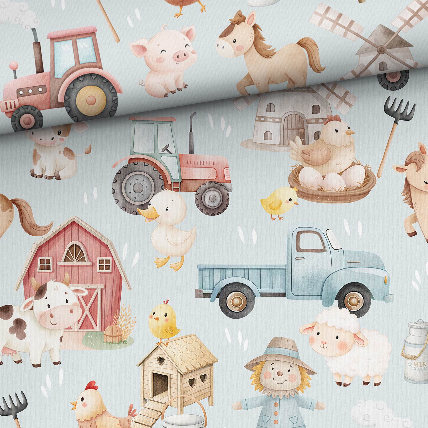 Kvalitní nepočesaná teplákovina Zemědělská doplňková světle modrá, kterou si zamilujete pro její stálost a snadné zpracování. Vzor můžete dokombinovat s našemi jednobarevkami - náplety či teplákovinou. Samozřejmostí jsou i nitě v ladicí barvě.