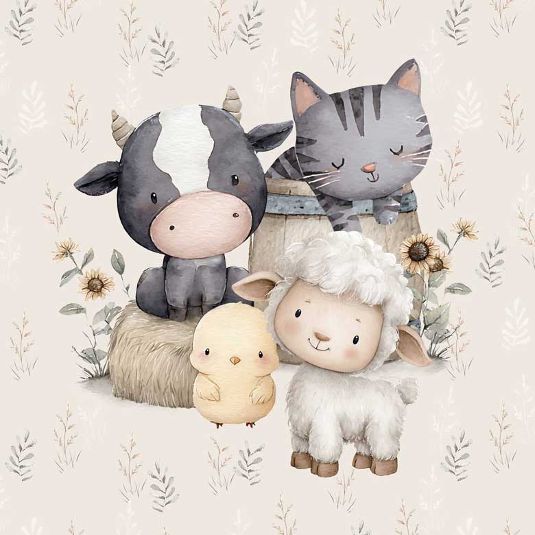 Teplákovina, Zvířátka ze statku krémová, panel (E)