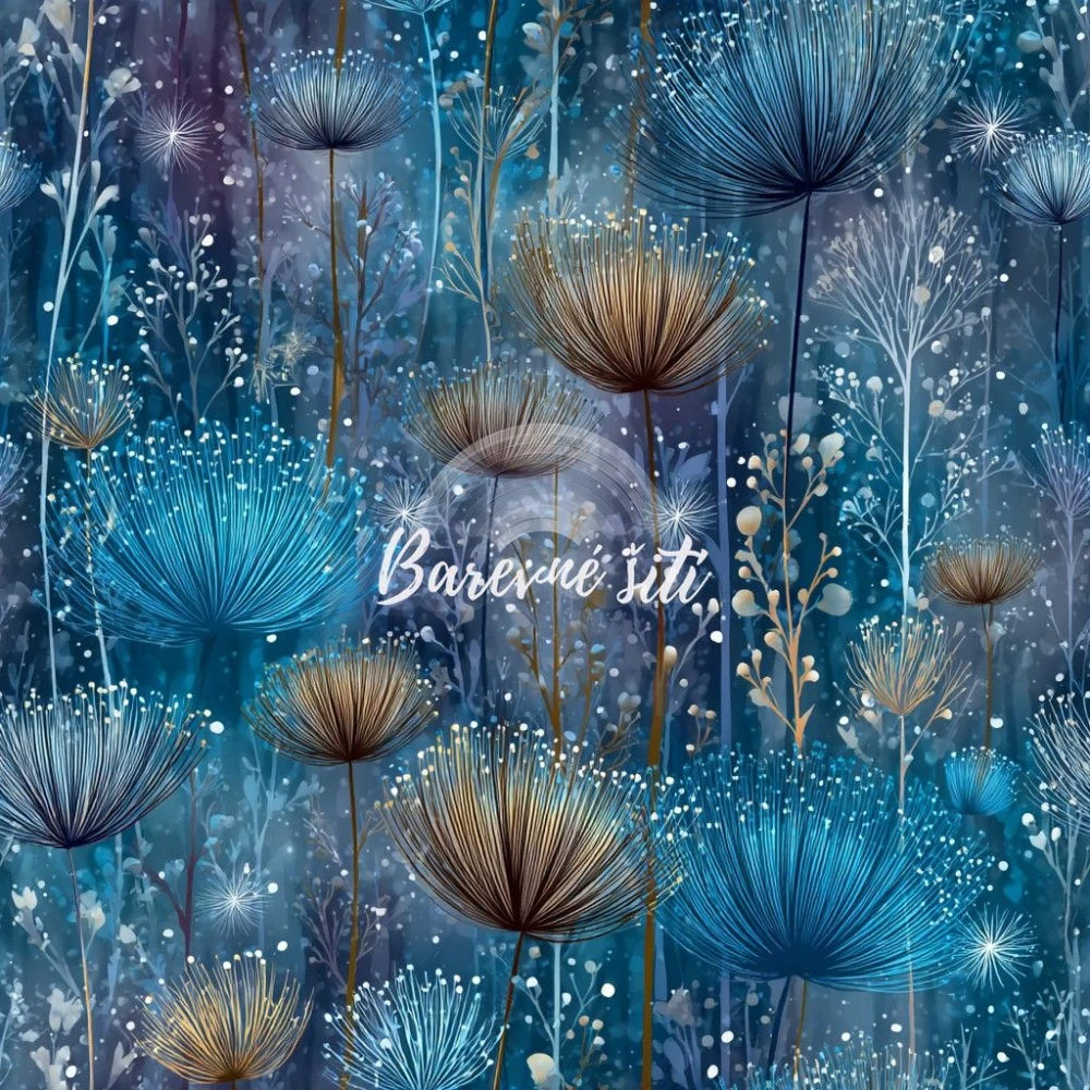Úplet, Modrozimní rostlinky. Pokud hledáte top kvalitní úplet je Bella ta správná volba. Úplet je lehká jemná látka, tenčí než teplákovina. Látka je pružná, prodyšná, hladká na omak, příjemná na tělo. Nosí se velmi pohodlně díky pružnosti v obou směrech. Vzor můžete dokombinovat s našemi jednobarevkami - náplety či bavlněnými úplety. Samozřejmostí jsou i nitě v ladící se barvě.