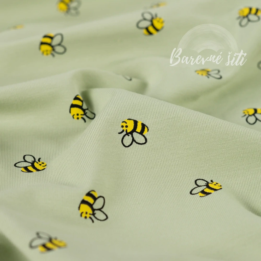 Úplet, Včelky, dusty mint. Objevte svěží jarní kolekci bavlněných úpletů – lehkých, měkkých a krásně potištěných. Kvalitní úplet s příjemnou pružností se skvěle nosí, drží tvar a snadno se kombinuje.