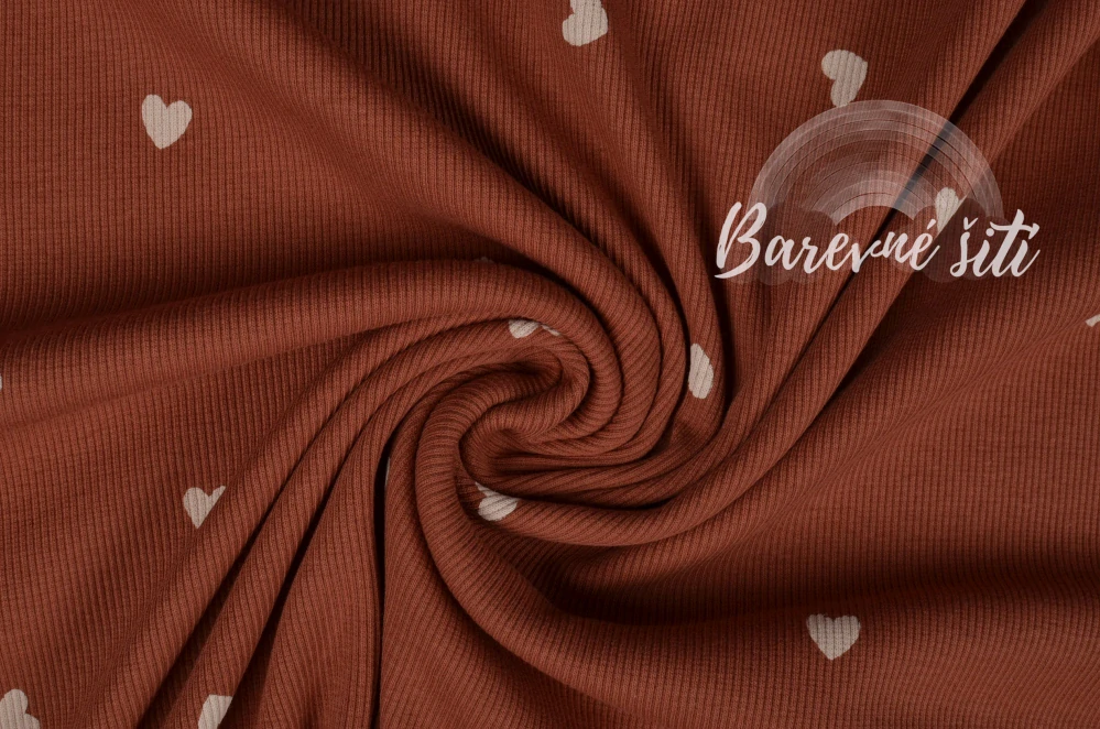 Úplet žebrovaný Srdíčka cihlová (E)🌈 Skladem 17 m250,00 Kč/ m206,61 Kč bez DPH