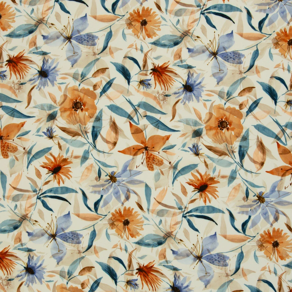 Viskoza Terra květy, petrolej listy (E)🌈 Skladem 4.8 m215,00 Kč/ m177,69 Kč bez DPH