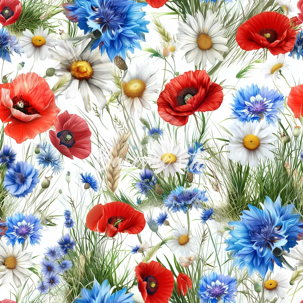 Viskozový úplet, Polní kvítí na světlé (E)🌈 Skladem 2 m325,00 Kč/ m268,60 Kč bez DPH